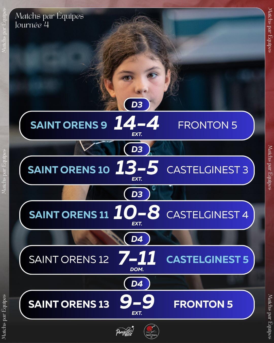L’équipe 9 (D3) et l’équipe 13 (D4), invaincues, cherchent une montée en division supérieure et pour cela il fallait chercher un résultat positif à Fronton . Chose faite pour l’équipe de Jaw en D3 et un poil moins bien pour l’équipe de Célia en D4 qui arrache un match nul en fin de match.